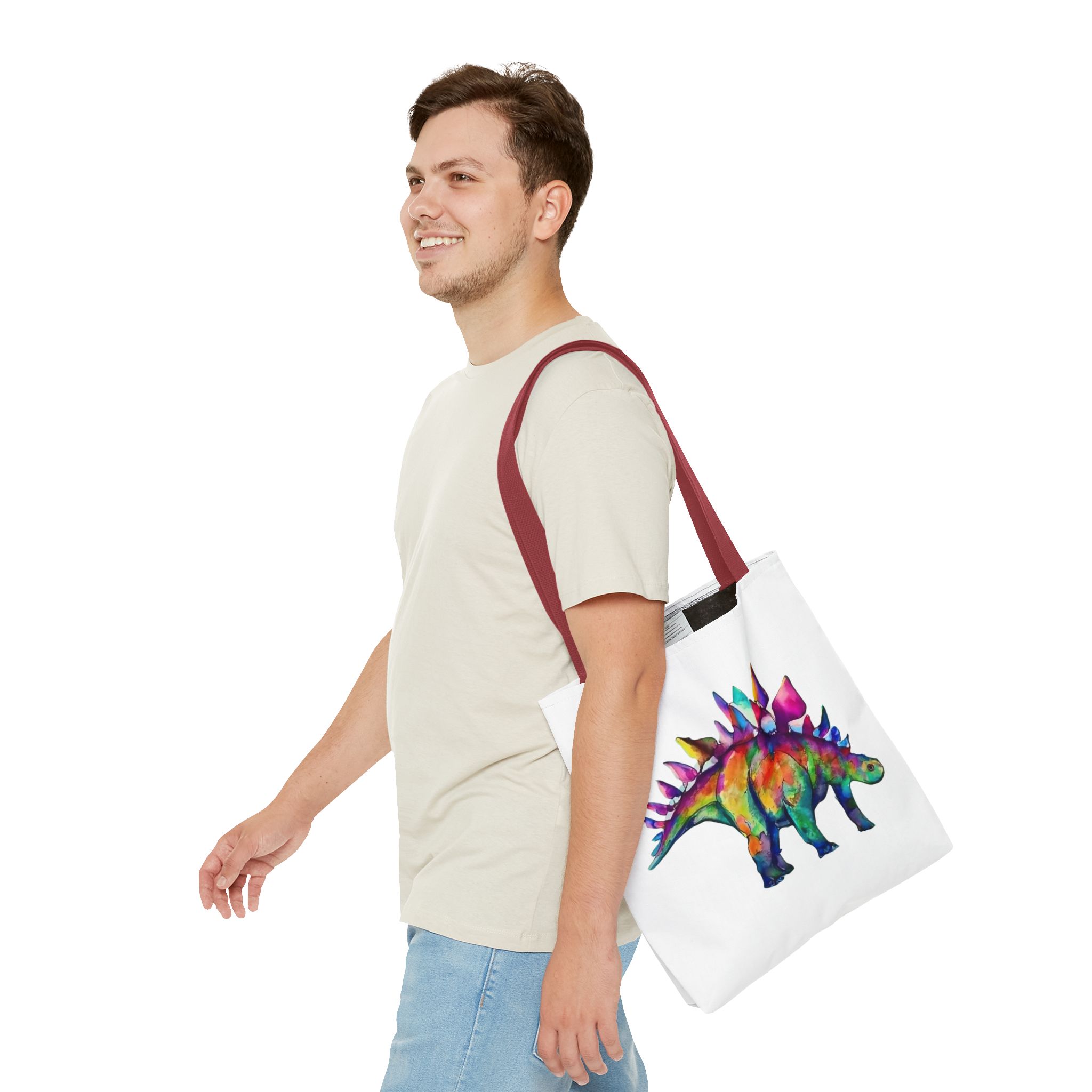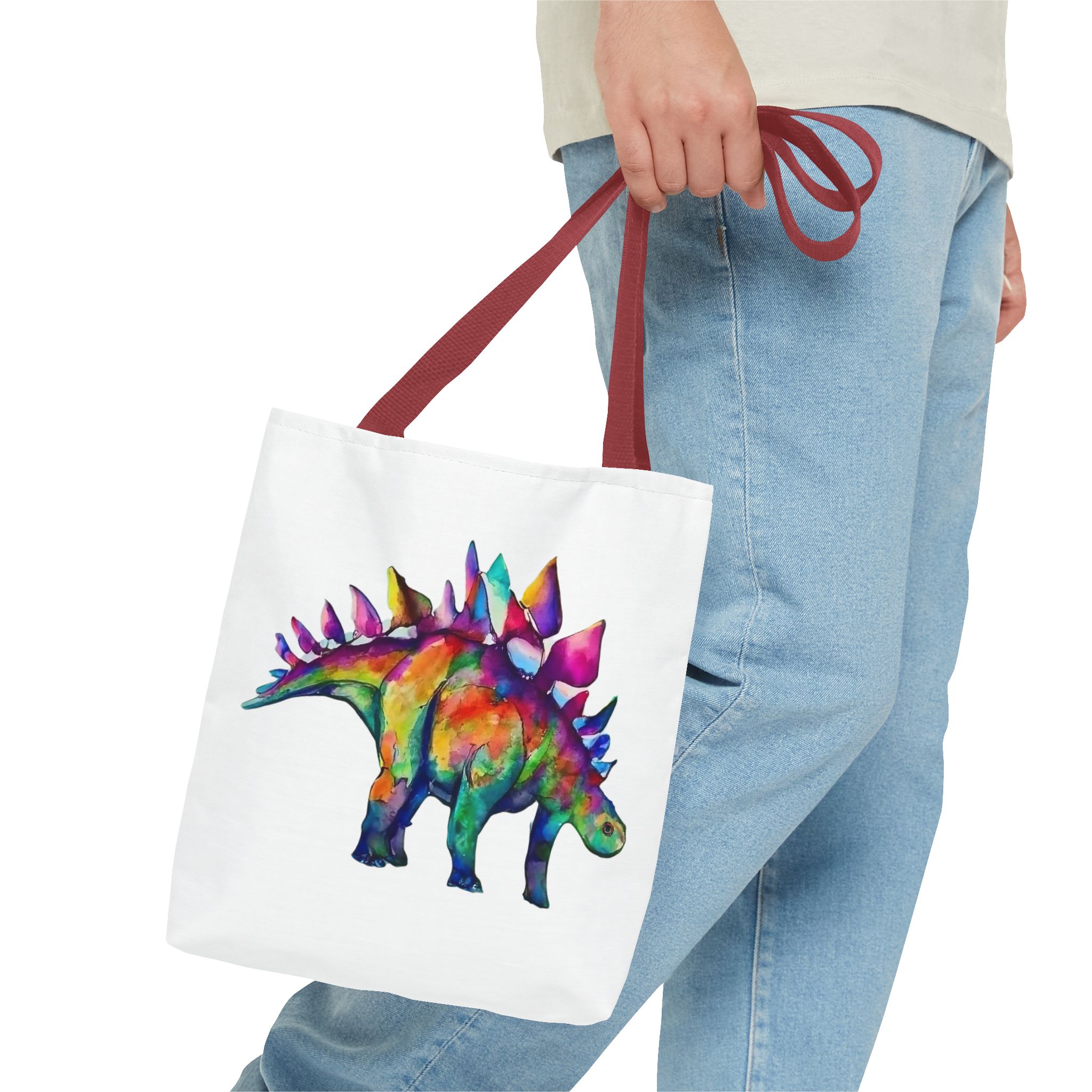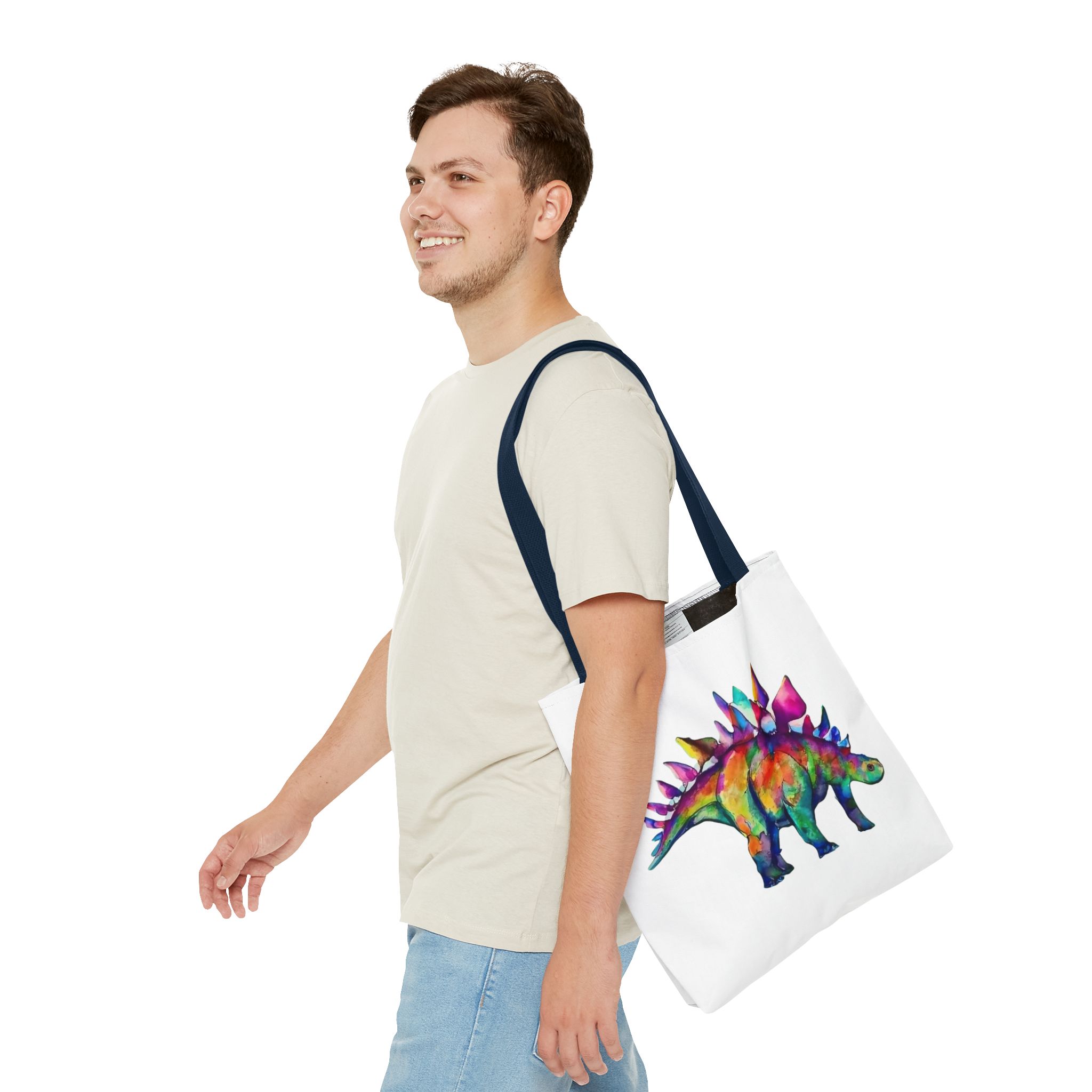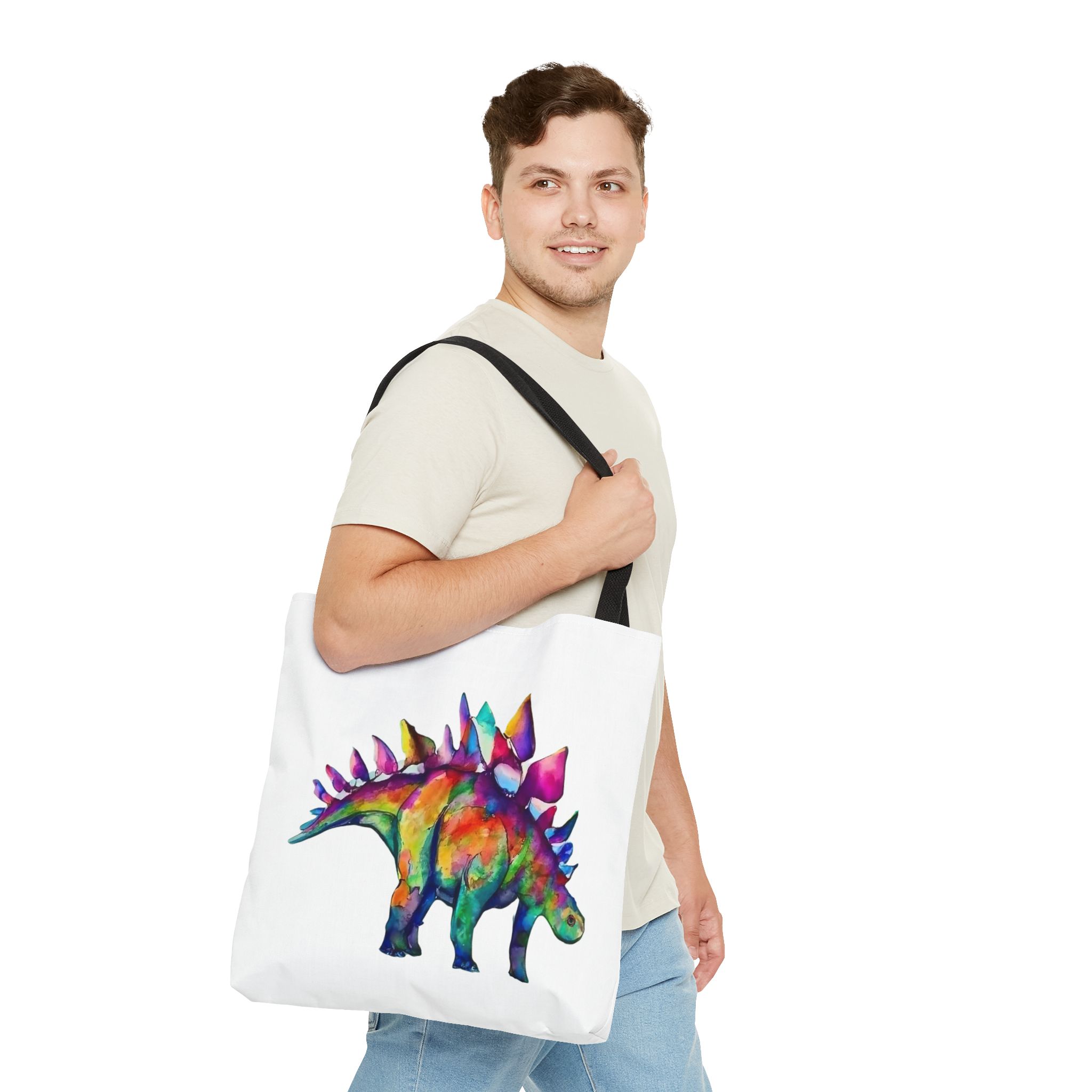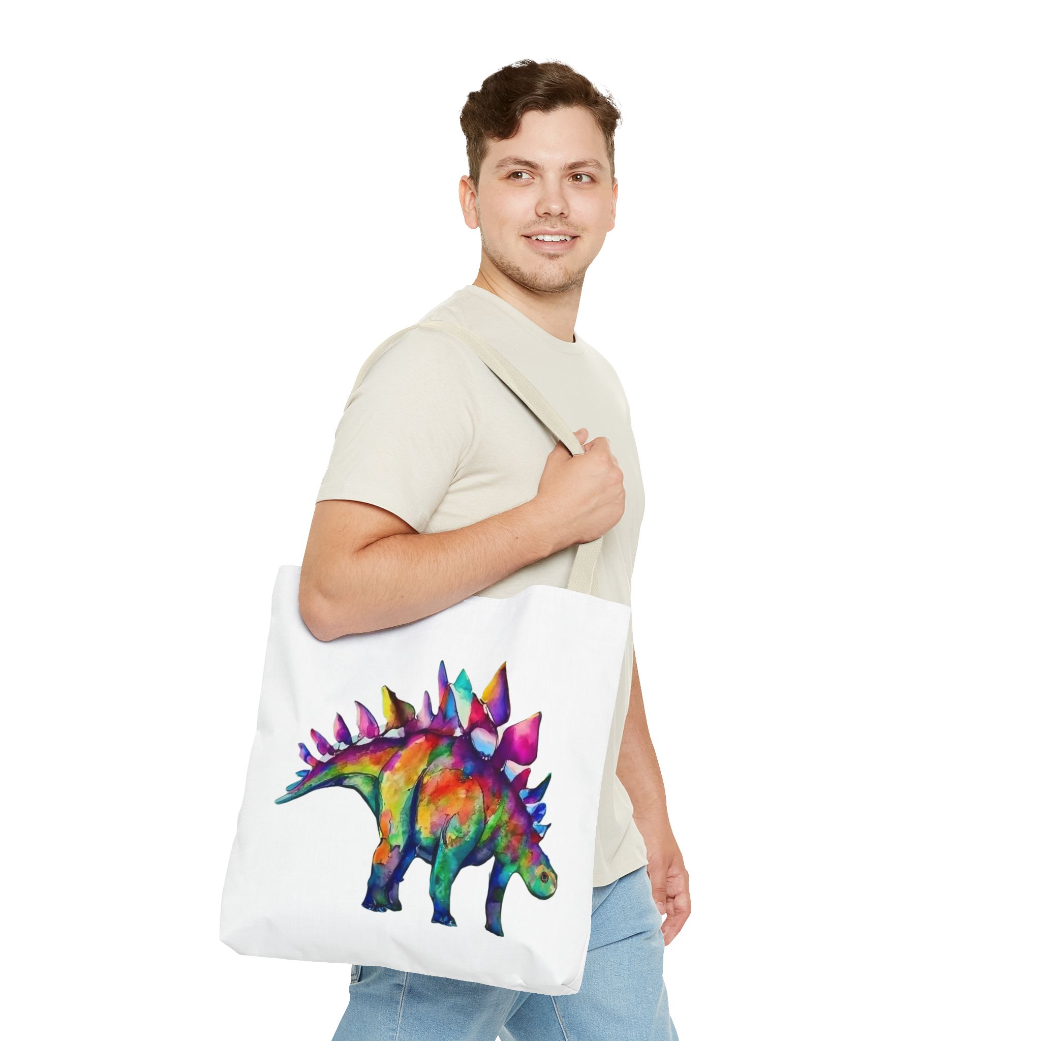 Featuring a punked-up Stegosaurus sporting a wild mohawk and a rebellious attitude, this tote is the perfect blend of whimsy and edgy charm. Imagine strutting down the street, turning heads and sparking conversations with your one-of-a-kind dino companion.